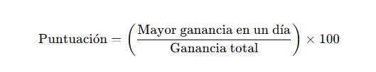 La puntuación del comerciante evalúa cuán balanceadas están tus ganancias. Se calcula comparando el día que te fue mejor con tu ganancia total.